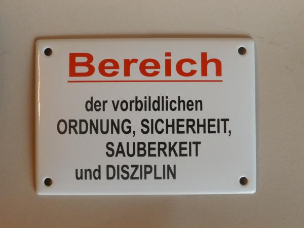 Schild Anerkannter Bereich Vorbildlicher Ordnung Sicherheit Sauberkeit Und Disziplin Ddr Museum Berlin