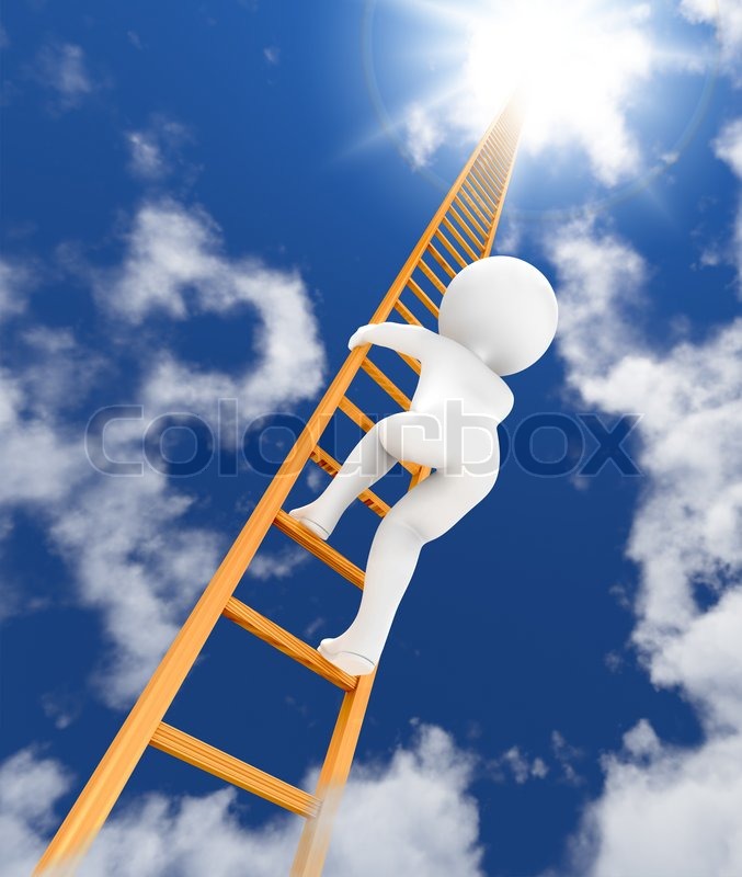 Weisses 3d Mannchen Besteigt Leiter In Himmel Leinwandbilder Bilder Karriereleiter Selbstuberwindung Streben Myloview De