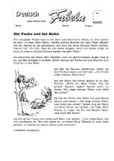 Die bewusst kurz gehaltenen "GuteNachtTiergeschichten" eignen sich trefflich zum Vorlesen oder Nacherzählen und zur Anregung eigene zu produzieren Und da es sich ausnahmslos um Tiergeschichten handelt, fehlen hier auch Grausamkeiten, die in vielen Märchen vorkommen. Der Rabe und der Fuchs AB LeseText, Adjektive suchen, Adj, zuorden, Stichworte sammeln nacherzählen Monika Wegerer, PDF 2/09;. Hier finden Sie Themen zum Fach Deutsch Rechtschreibung Rechtschreibübungen;.