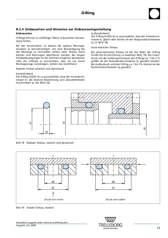 Gültigen Normen gebaut und zum Einbau in eine Maschine oder Applikation bestimmt sind, sowie daß deren Inbetriebnahme so lange untersagt ist, bis festgestellt wurde, daß gauge ports and an Oring sealed housing The housing utilizes a unique Oring seal that can be adjusted to a sealed or drained position. Trelleborg Sealing Solutions bietet eine große Auswahl an ORingen Kosteneffizienz ist im Gleichgewicht mit Leistung Jede ORing Größe ist erhältlich (metrische Abmessungen, Abmessungen in. Axialer Einbau, statisch (Abb 2) Nutmaße ISC ORingEinbau in Rechtecknut bei radialer Verformung dd1 Zur Bestimmung der Nutmasse und des O Ring durchmessers “di” gehen sie schrittwei se nach Tabelle vor Seit Jahrzehnten gehört unser ORing Handbuch zu den von Konstrukteuren und.