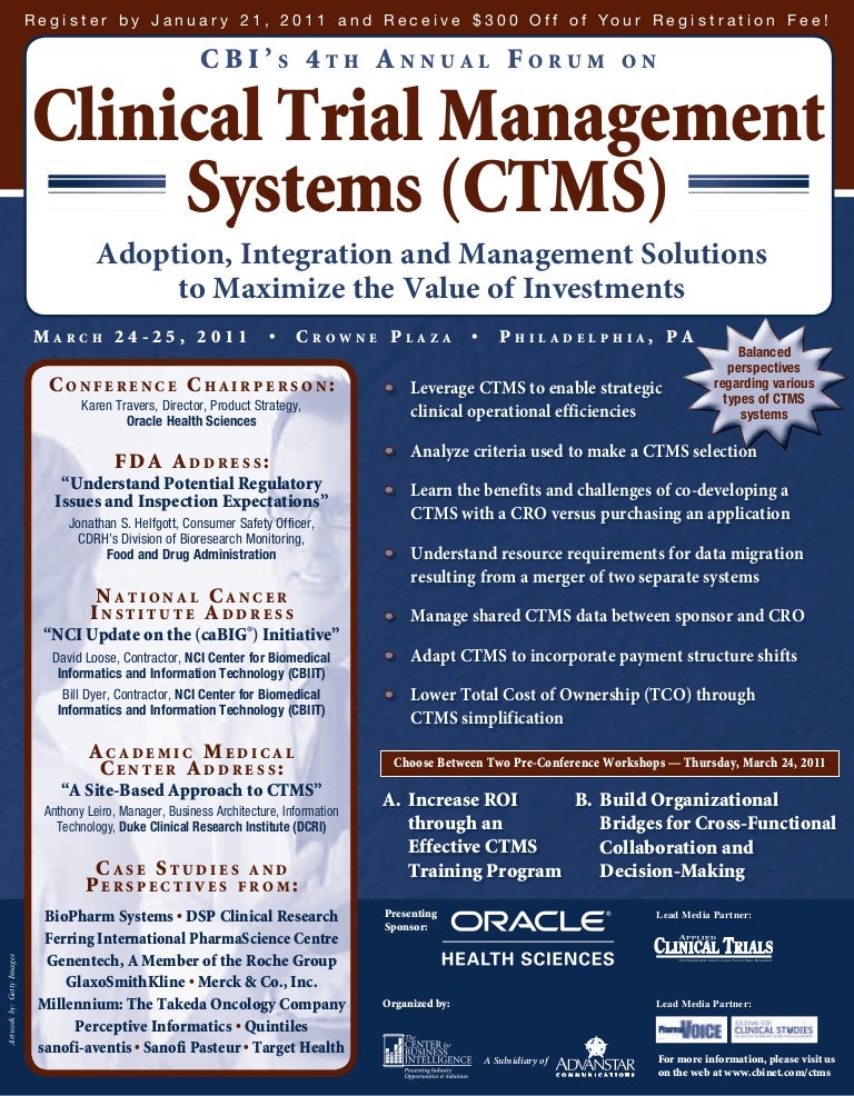 Cbi S 4th Annual Forum On Clinical Trial Management Systems Ctms