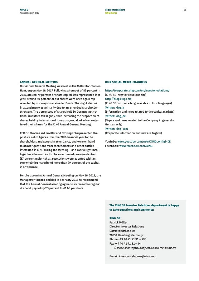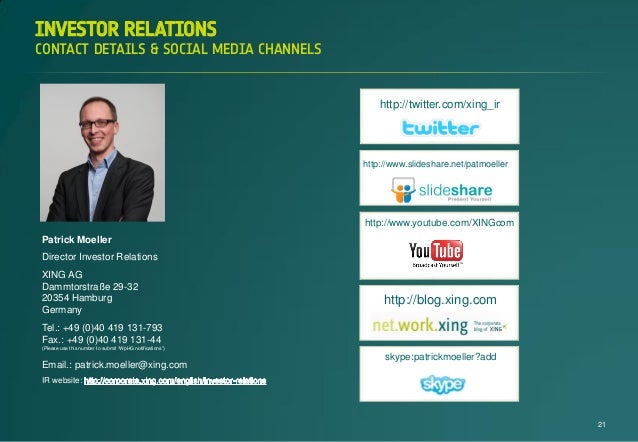 Xing investor relations. Investor Relations Investor Relations back to overview Investor Relations NEW WORK SE (formerly XING SE) today released its figures for the first nine months of Compared to the same period in the previous year, revenues (excl M&A effects) saw slight growth of 4 per cent to €45 million (9M 19 €1964 million). To optin for investor email alerts, please enter your email address in the field below and select at least one alert option After submitting your request, you will receive an activation email to the requested email address You must click the activation link in order to complete your subscription. Singapore 兴华港口控股有限公司 Xinghua Port Holdings Ltd 7 Temasek Boulevard #1601 Suntec Tower One Singapore 0387.