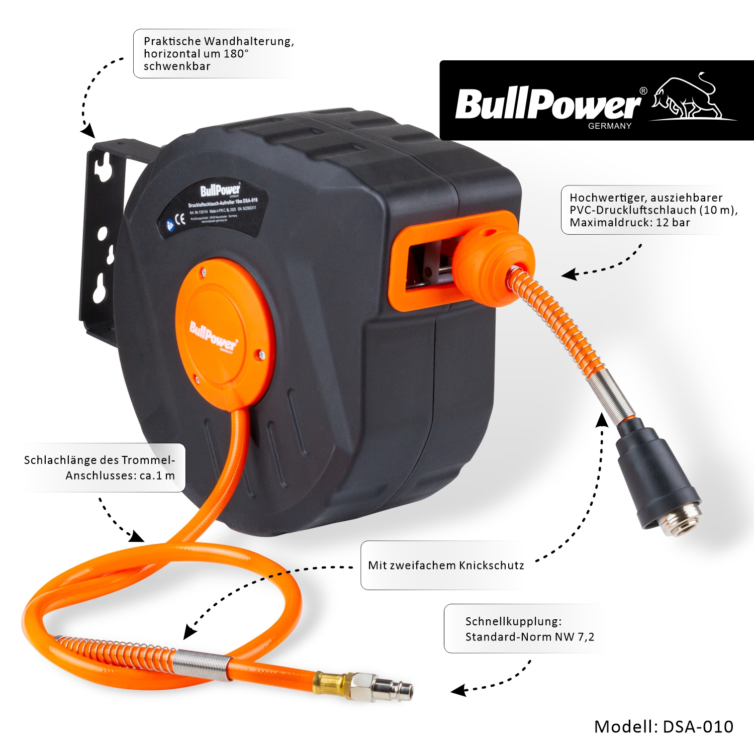Druckluftschlauch Aufroller Schlauchtrommel Schlauchaufroller 10m m Druckluft Ebay
