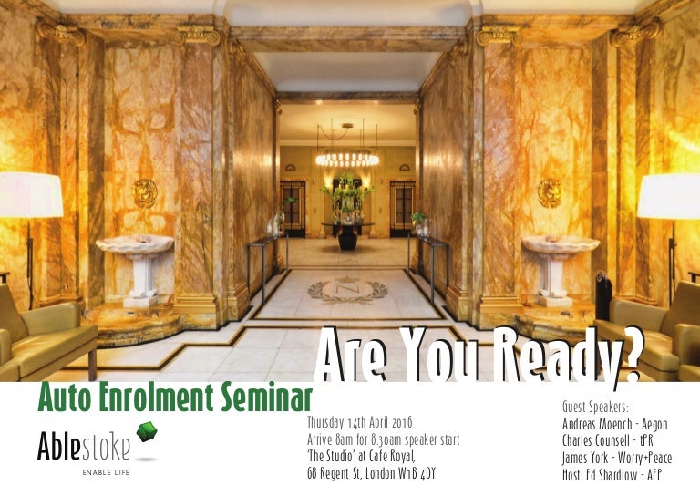 Auto Enrolment Seminar 14th April 16 Cafe Royal
