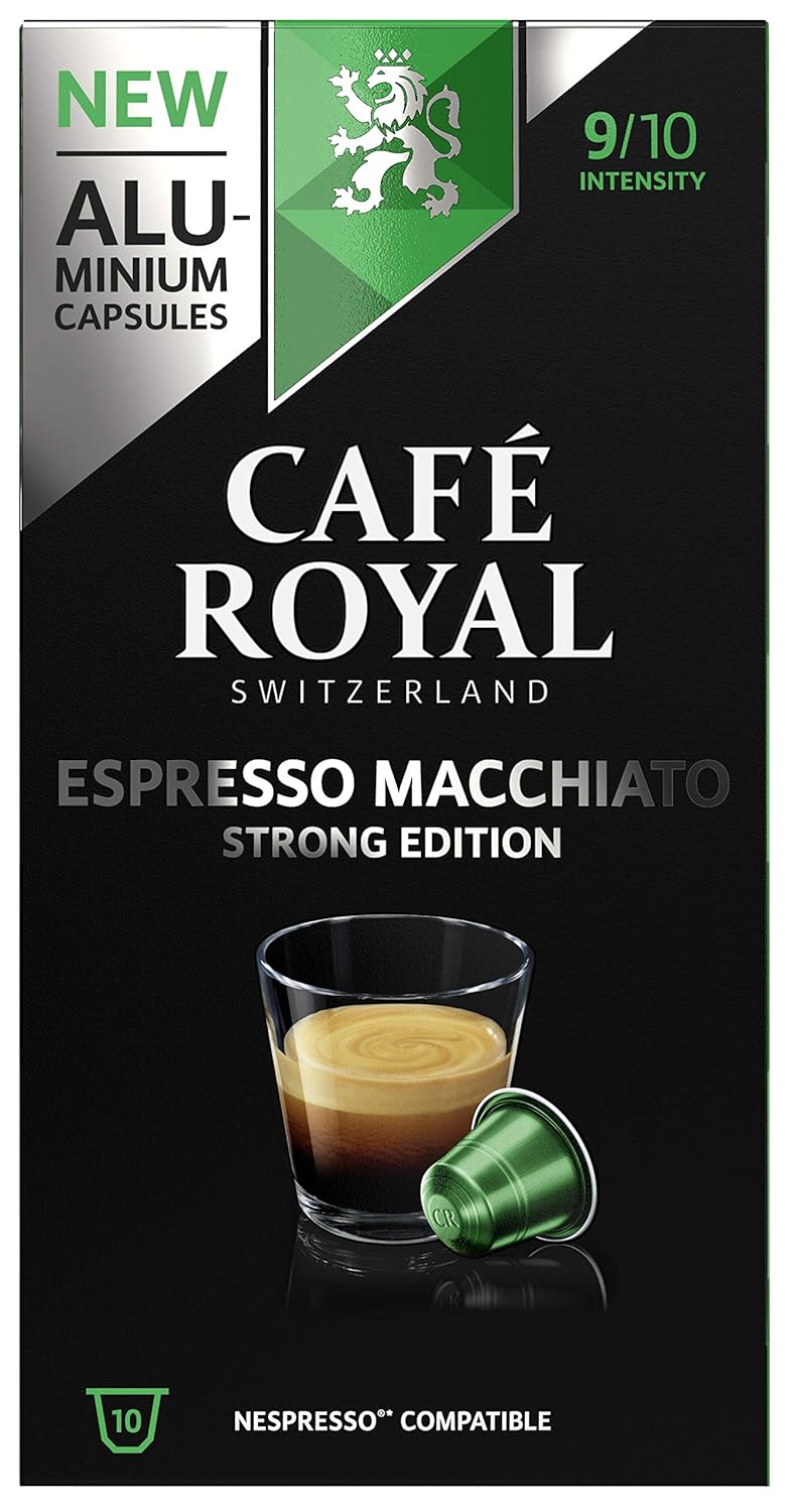 Cafe Royal 50 Espresso Macchiato Strong Edition Nespresso R Kompatible Kapseln Aus Aluminium Intensitat 9 10 50 Kaffeekapseln 5 X 10 Pack Utz Kompatibel Mit Nespresso R Kaffeemaschinen Amazon De Lebensmittel Getranke