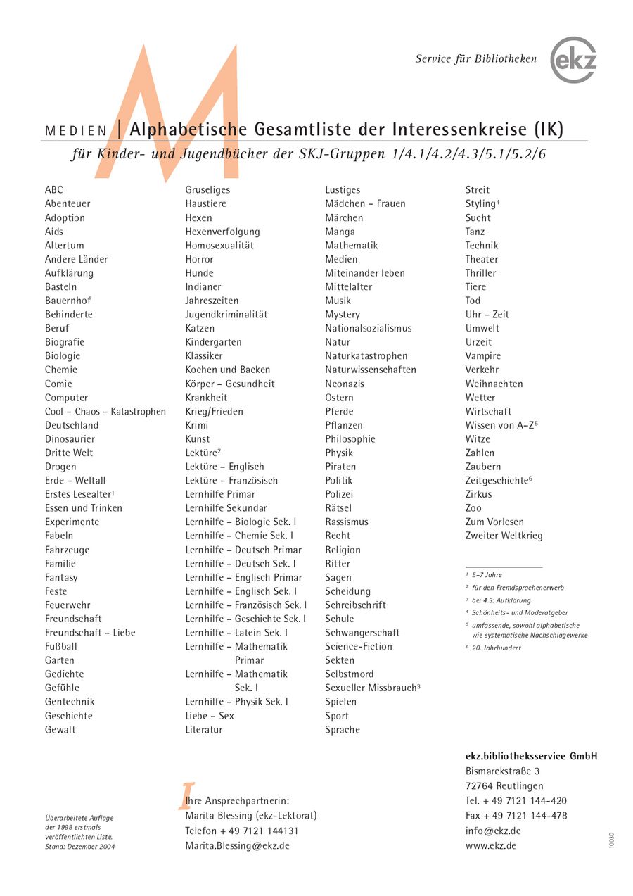 Interessenkreise Fur Kinder Und Jugendbucher 11 Von Ekz Bibliotheksservice