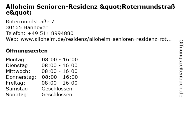 ᐅ Offnungszeiten Alloheim Senioren Residenz Rotermundstrasse Rotermundstr 7 In Hannover Vahrenwald