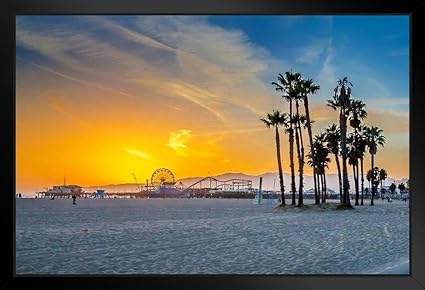 Poster Venice Beach Kalifornien Riesenrad Sonnenuntergang Landschaft Foto Schwarz Holz Amazon De