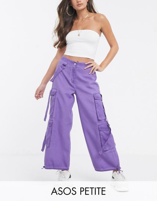 Asos Design Petite Olgewaschene Combat Hose Mit Tragern In Violett Asos