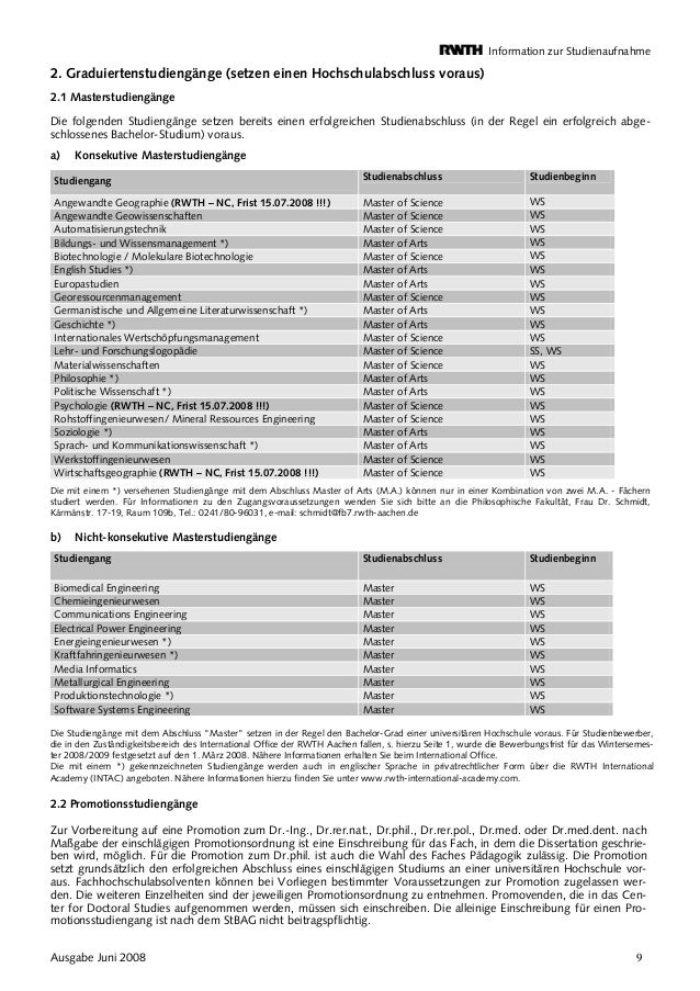 Informationen Zur Studienaufnahme Sommersemester 15 By Rwth chen University Issuu