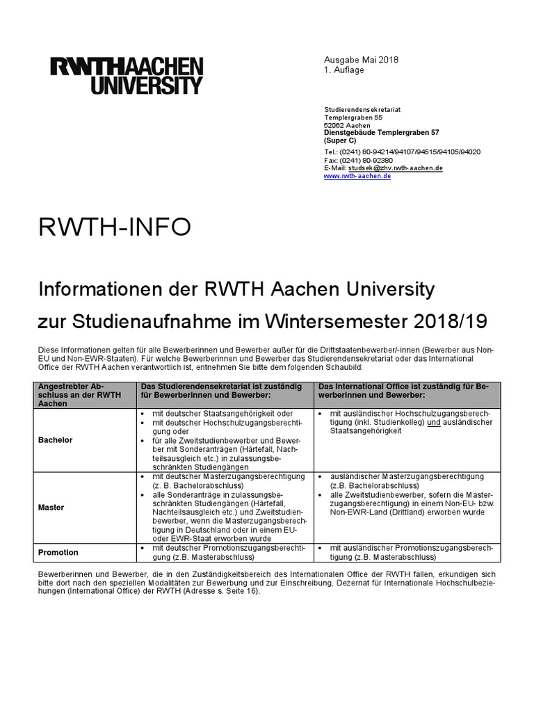 Bewerberbroschure Studienplatzbewerbung Und Einschreibung An Der Rwth Wie Geht Das Ein Leitfaden Fur Schuler Innen Und Studieninteressierte Pdf Kostenfreier Download