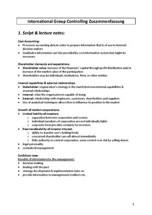 International Group Controlling Zusammenfassung Studocu
