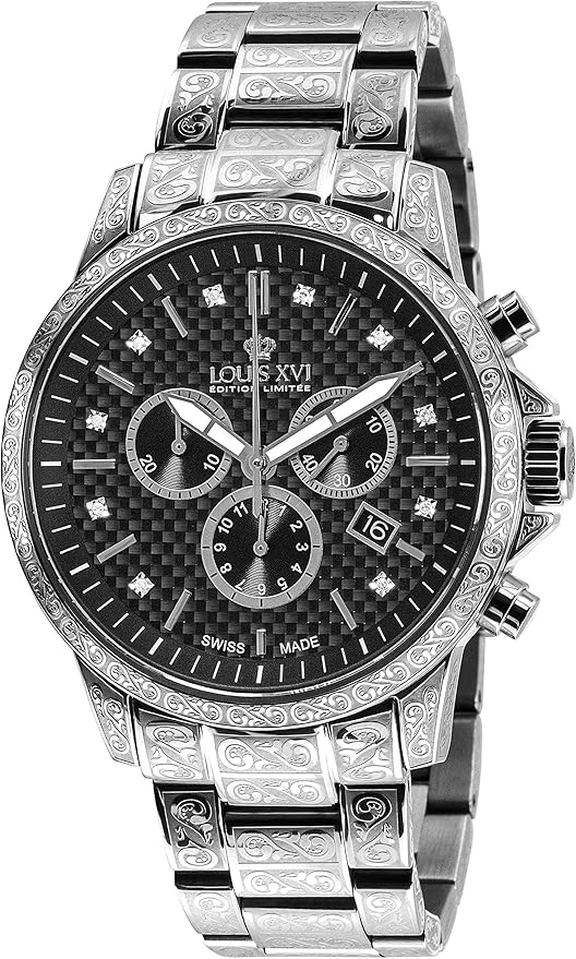Louis Xvi Herren Armbanduhr Palais Royale Stahlband Silber Schwarz Karbon Echte Diamanten Chronograph Analog Quarz Edelstahl 3 Amazon De Uhren