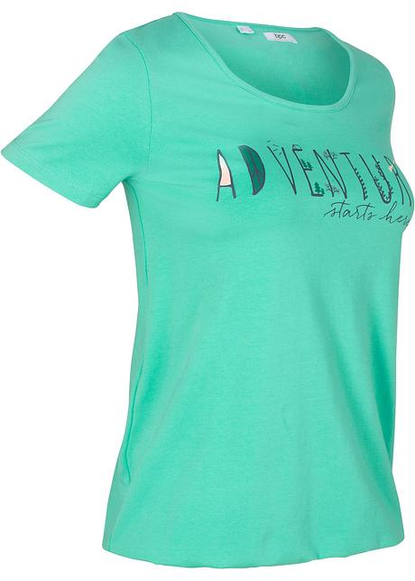 Bedrucktes T Shirt Mit Rundhalsausschnitt Und Elastischem Saum Karibikgrun Bedruckt