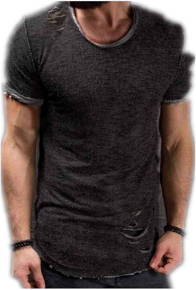 Herren Sommer Herren Rundhalsausschnitt T Shirt Saum Kurzarm Zerrissenes Herrenoberteil Amazon De Bekleidung