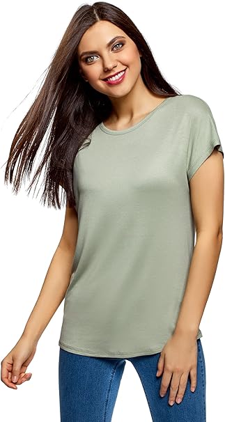 Oodji Ultra Damen Viskose T Shirt Mit Abgerundetem Saum Amazon De Bekleidung