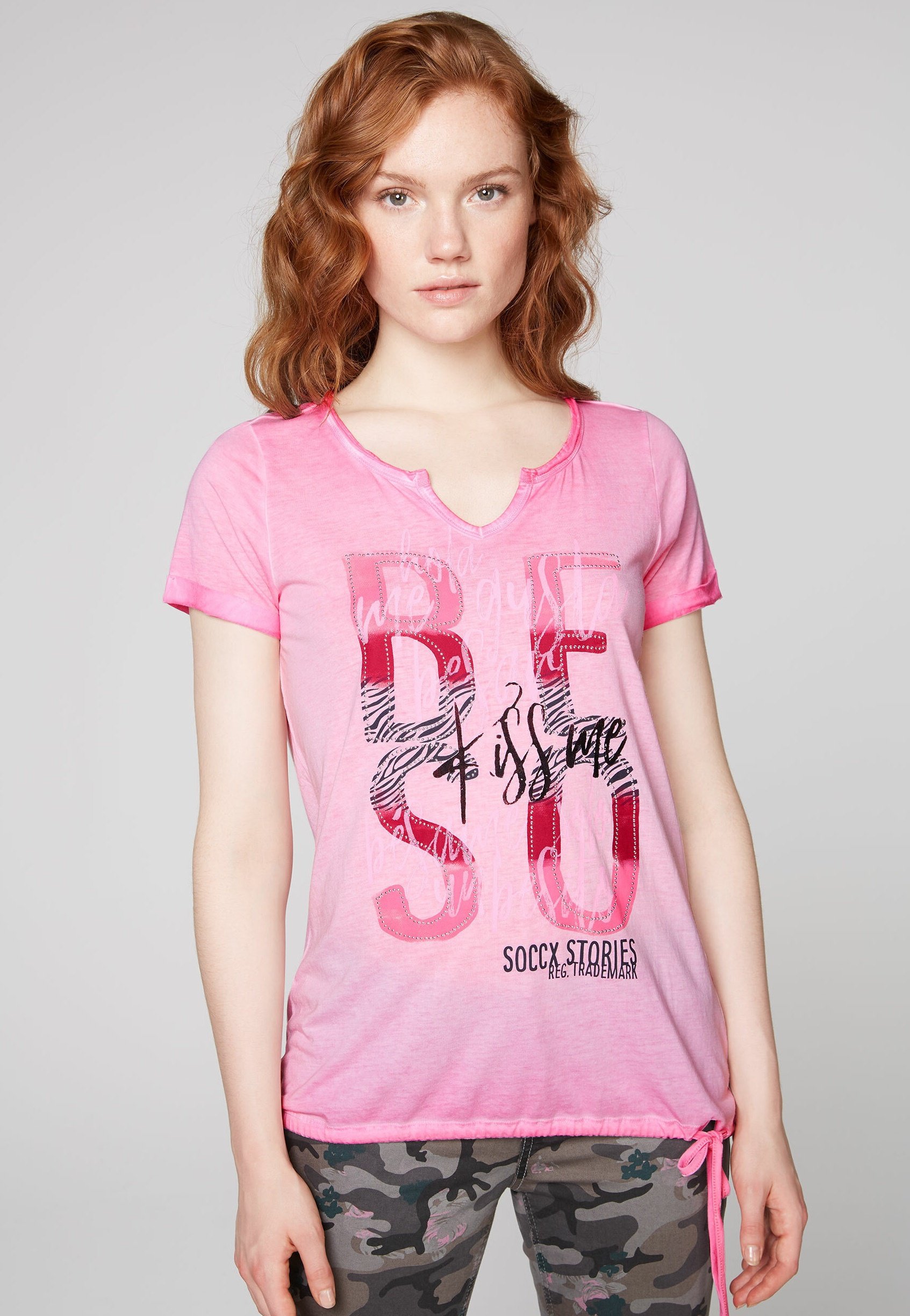 Soccx Mit Artwork Und Saum Zum Binden T Shirt Print Sugar Rose Zalando De