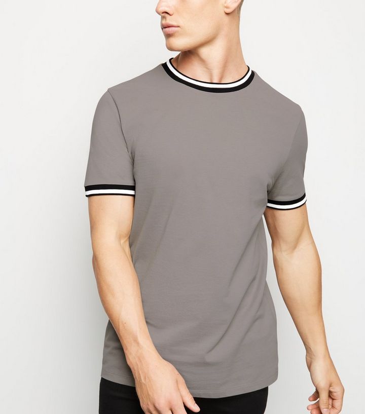 Hellgraues Pikee T Shirt Mit Kontrastierendem Saum New Look