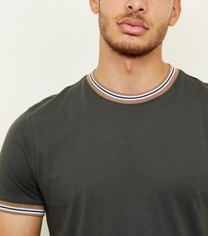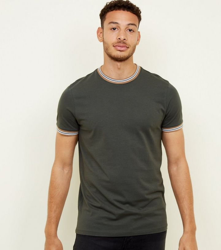 Dunkelgrunes T Shirt Mit Abgesetztem Saum New Look