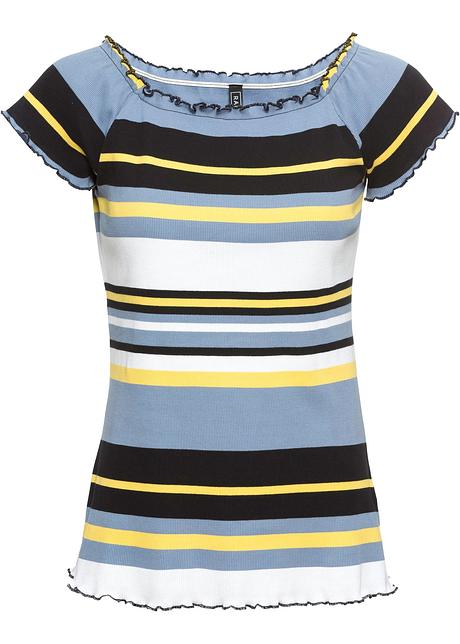 Geripptes Shirt Mit Krauselkante Schwarz Gelb Blau Weiss Gestreift