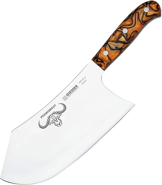 Amazon Com Giesser Premium Cut Chopper Butcher No 1 Spicy Orange Big Cleaver Extra Sharp 8 65 Inch Stainless Steel Blade With Wooden Box Kitchen Dining
