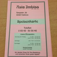 YanAsiaImbissnew YanAsiaImbiss YanAsiaImbissA5Aussen YanAsiaImbissA5Innenfinal YanAsiaImbissGeschlossenTatum Order your food with us Check our menu above or give us a call Send us your food ordering request Food orders can not be done outside of opening hours. Asia Imbiss in Frankfurt am Main, reviews by real people Yelp is a fun and easy way to find, recommend and talk about what’s great and not so great in Frankfurt am Main and beyond. See more of Asia Imbiss Osterode on Facebook Log In Forgot account?.