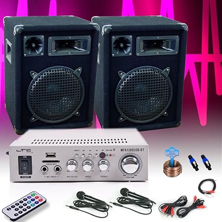 Dj 27 Pa Komplett Set Lautstarkes Musikanlage Mit 00 Watt Pa Boxen Verstarker Inkl Kabel Set Mikrofon Fur Bis Zu 250 Personen Usb Sd Slot Fur Mp3 Datentrager 4x 30cm Subwoofer Amazon De Alle Produkte