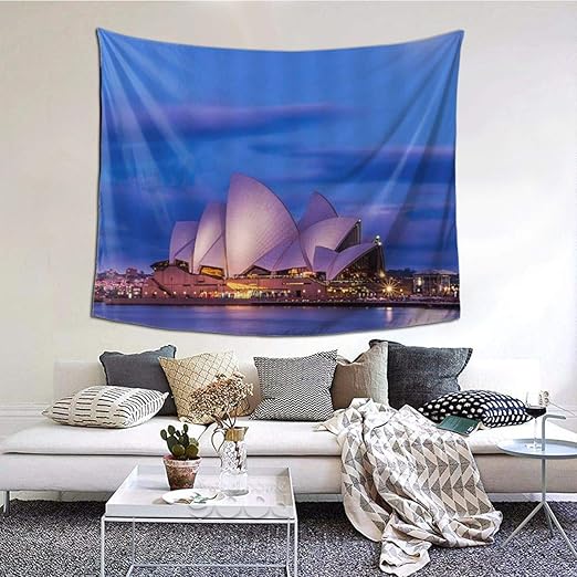 Lasinsu Tapisserie Wandbehang Sydney Opera House Australien Wahrzeichen Harbour Night Weltberuhmtes Zentrum Fur Darstellende Kunst Shell Shaped Architecture Art Home Decor Wandteppiche Wandkunst Amazon De Kuche Haushalt