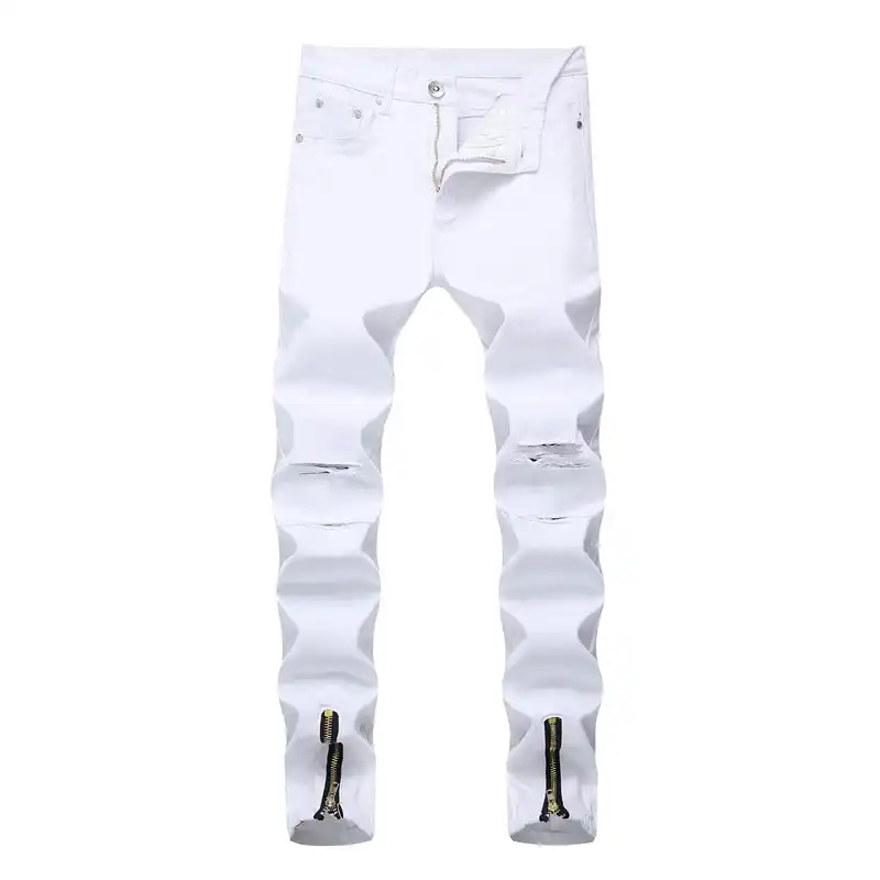 New Ripped Denim Hose Jeans Manner Knie Loch Zipper Biker Jeans Mannlichen Jungs Weiss Marke Dunne Dunne Zerstort Zerrissen Jean Hosen Hip Hop Jeans Aliexpress