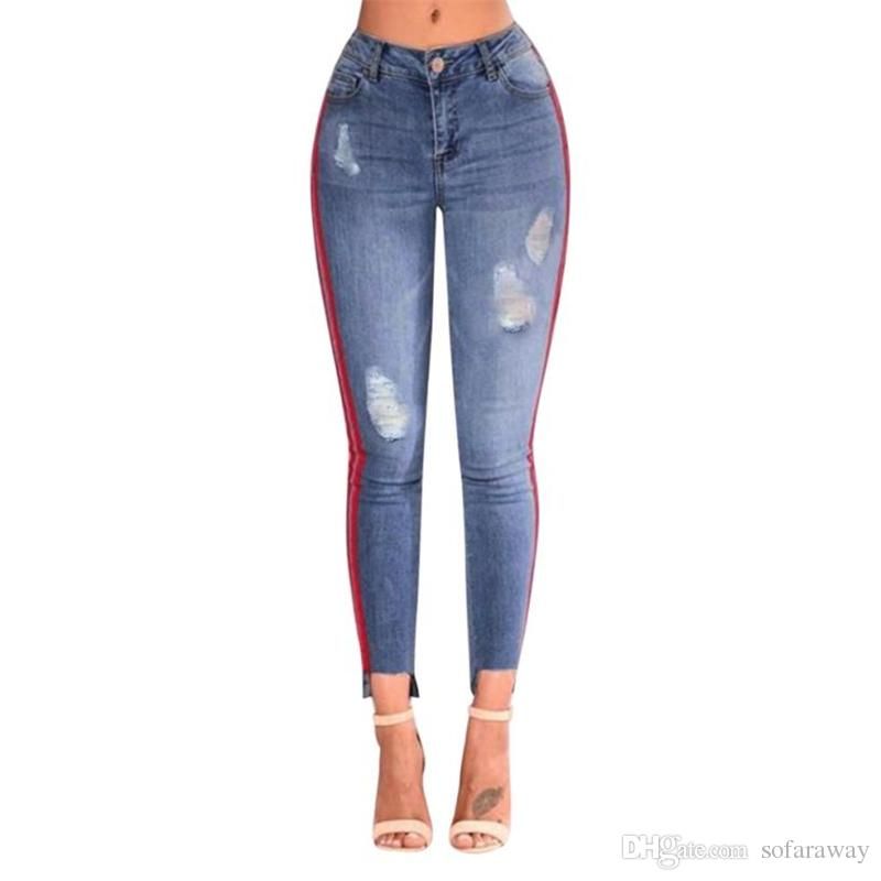 Grosshandel Ripped Stretchy Loch Bleistift Hosen Frauen Denim Hoch Taille Jeans Seitenstreifen Zerrissene Loch Hose Blau Hohe Taille Jeans Fur Frauen Von Zhouheyuan 1981 6 71 Auf De Dhgate Com Dhgate