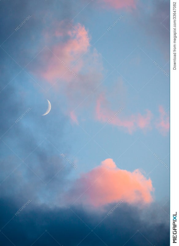 Pink Clouds And Moon Heaven Closeup Stock Photo Megapixl