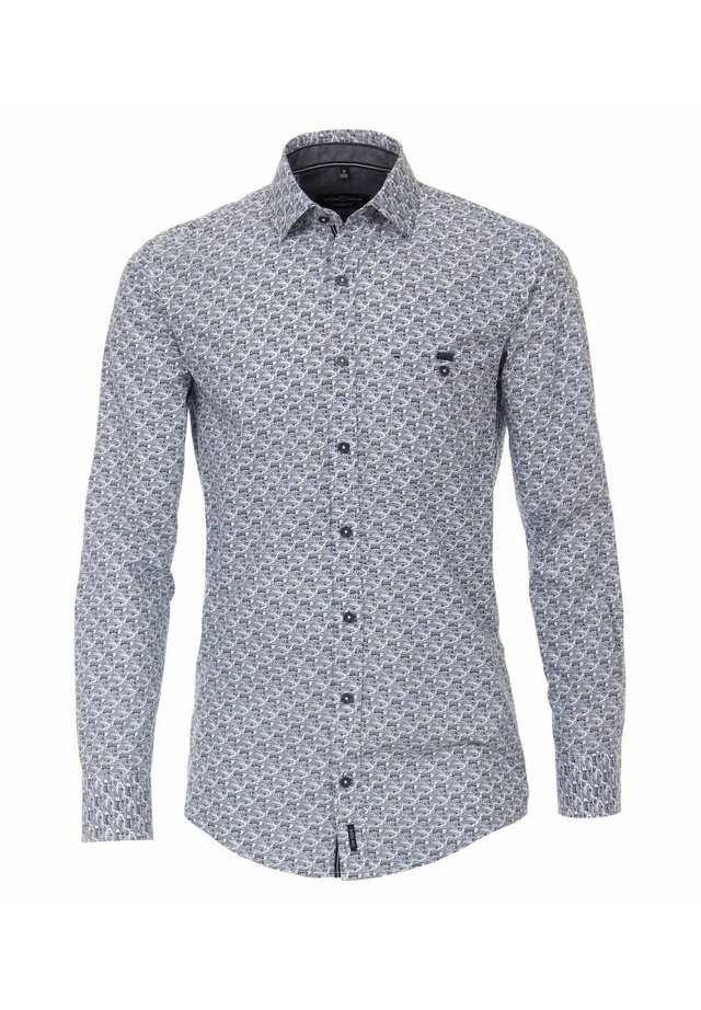 Olymp Luxor Modern Fit Hemd 69er Arm Global Kent Schwarzer Bluten Print Weiss