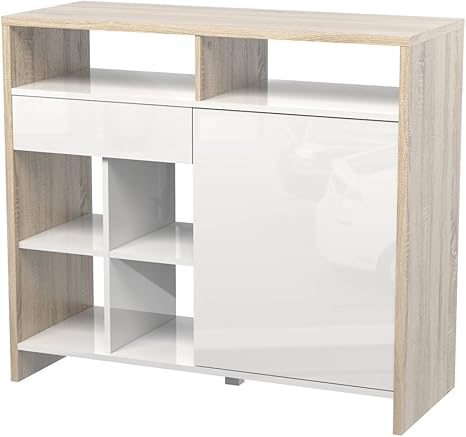 Dynamic24 Bartisch James Bartheke Tresen Stehtisch Bar Kuche Theke Hochglanz Eiche Weiss Amazon De Kuche Haushalt