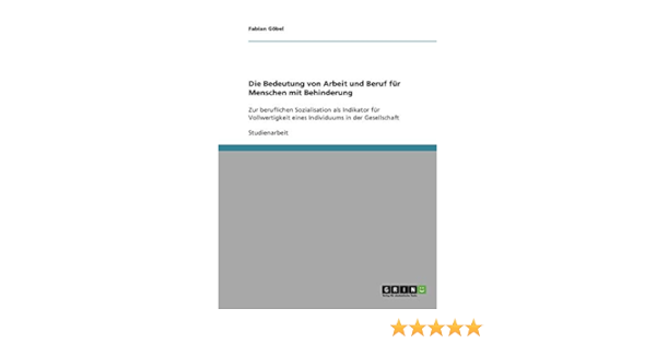 Die Bedeutung Von Arbeit Und Beruf Fur Menschen Mit Behinderung Zur Beruflichen Sozialisation Als Indikator Fur Vollwertigkeit Eines Individuums In Der Gesellschaft Amazon De Gobel Fabian Bucher