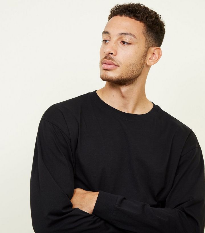 Schwarzes Oversize T Shirt Mit Langen Armeln New Look