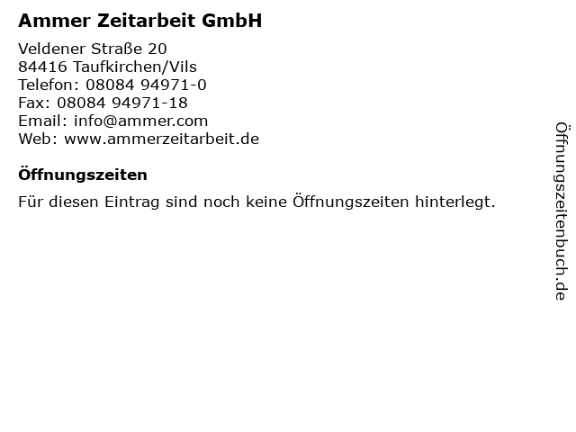 ᐅ Offnungszeiten Ammer Zeitarbeit Gmbh Veldener Strasse In Taufkirchen Vils