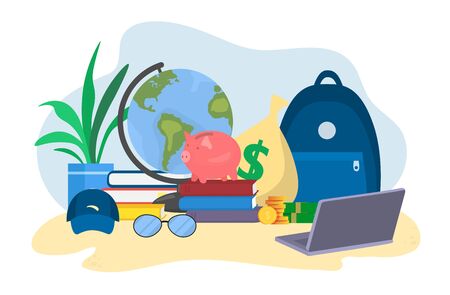 Freelancer Make Money In Travel Trip Stack Of Gold Coin Bank Credit And Debit Card Isolated On White Flat Vector Illustration Design Global Earth Bag Dollar Cash Finance Leaf Pot Laptop Work