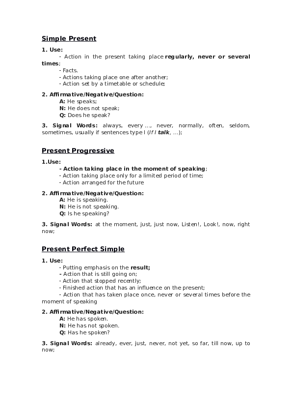 Doc Tense Affirmative Negative Question Use Signal Words Simple Present A He Speaks N He Does Not Speak Q Does He Speak Muhammad Latif Academia Edu