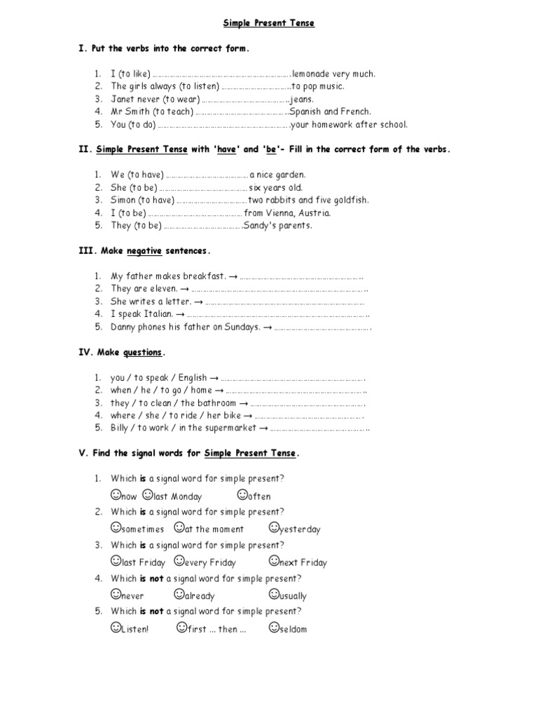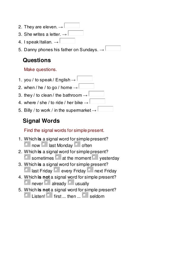 Signal words for the Simple Present;. "Signal Words" for Present Simple worksheet Simple present worksheets Present Simple/English test/ 3 pages Level elementary Age 1014 Downloads Present simple Level elementary Age 1017 Downloads 9461 GREAT PRESENT SIMPLE SET!. Keywords to indicate the presence of Simple Present Tense Keywords to indicate the presence of Simple Present Tense Keywords to indicate the presence of Simple Present Tense Always;.