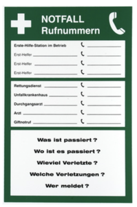 Schild Erste Hilfe Unfall Notfall Telefonnummer Verhalten Bei Unfallen x30 Cm Ebay