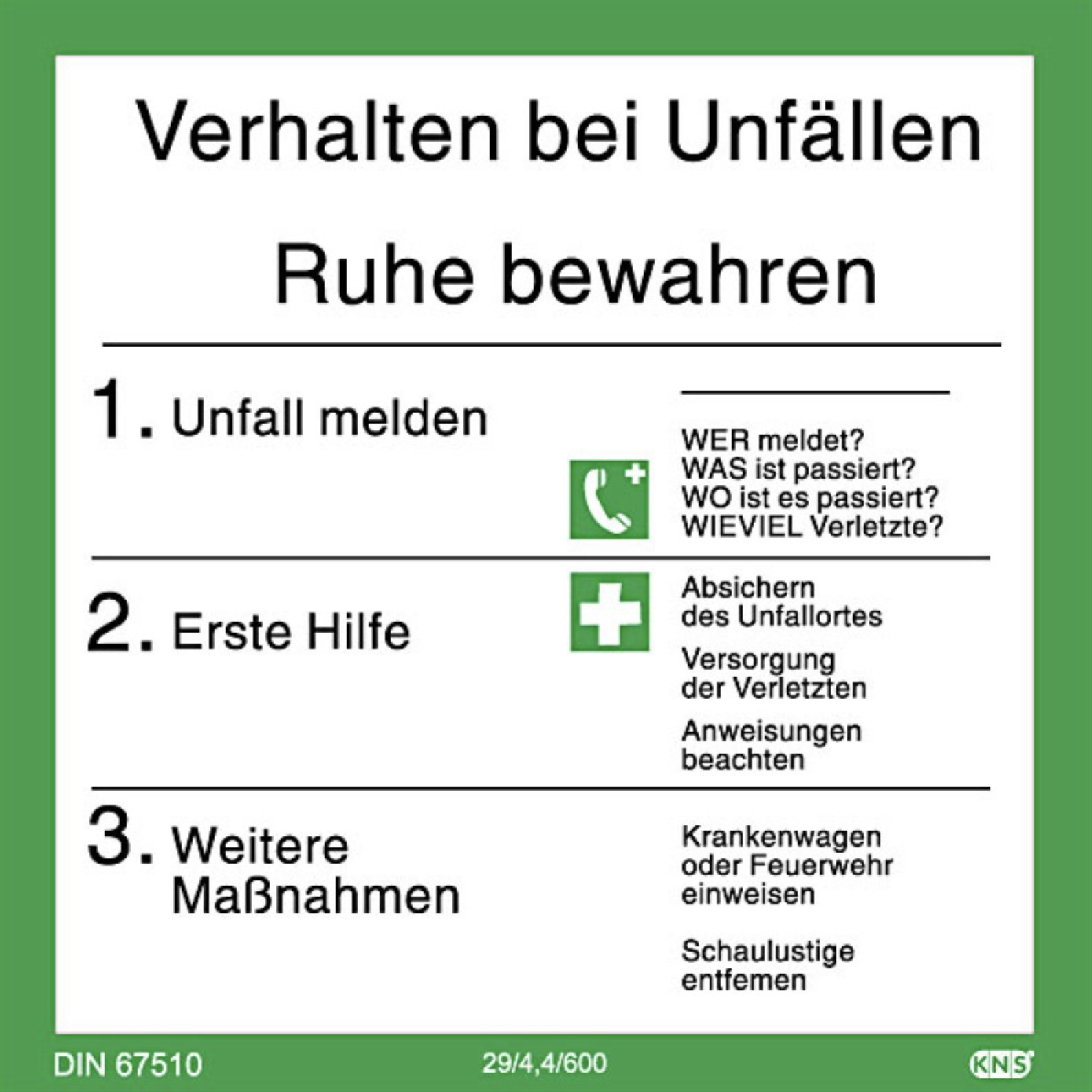 Verhalten Bei Unfallen Schild Aushang Iso 7010 Asr Kunststoffplatte