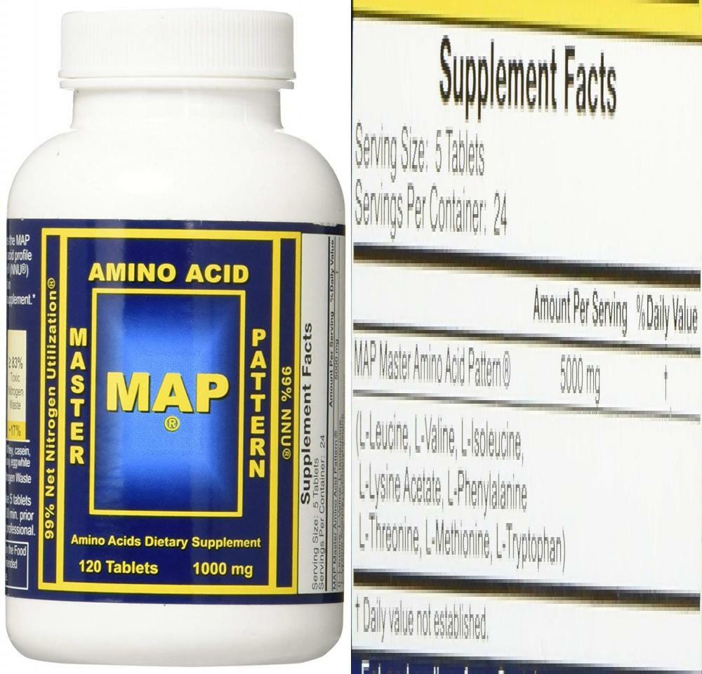 From this study, it might seem the master amino acid pattern would be better at building muscle. MAP is a dietary supplement that contains the MAP Master Amino Acid Pattern Clinical studies have shown that MAP provides a 99% Net Nitrogen Utilization (NNU) for Body Protein Synthesis (BPS) This is 3 times greater than the BPS provided by meat, fish, poultry or egg proteins and 6 times greater than that provided by whey, casein, soy or egg. INRC Master Amino Acid Pattern Map Muscle Building Tablets, 360 Count 48 out of 5 stars 69 $7605 Only 8 left in stock order soon Master Amino Acid Pattern (MAP) 45 out of 5 stars 262 $2725 Only 14 left in stock order soon.