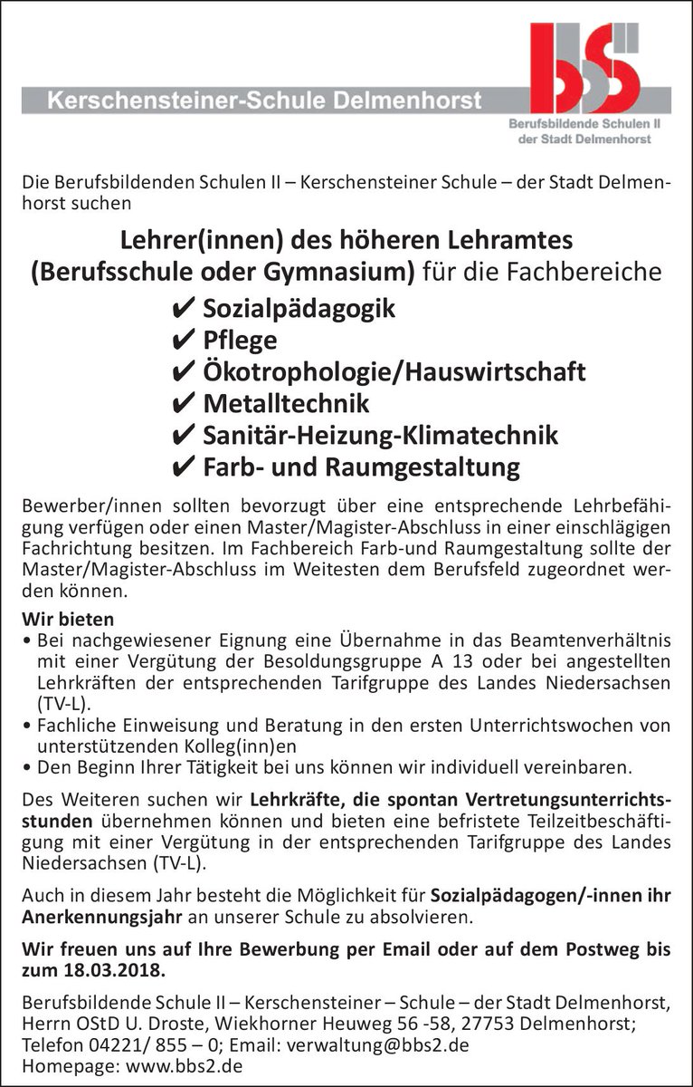 s Ii Delmenhorst Wir Suchen Neue Kolleginnen Und Kollegen Jetzt Bewerben Bewerbung Lehrer Lehrerin Delmenhorst Schule Berufsschule Gymasnium Schulemachtspass Stellenausschreibungen s2delmenhorst T Co Sfwndhcfce
