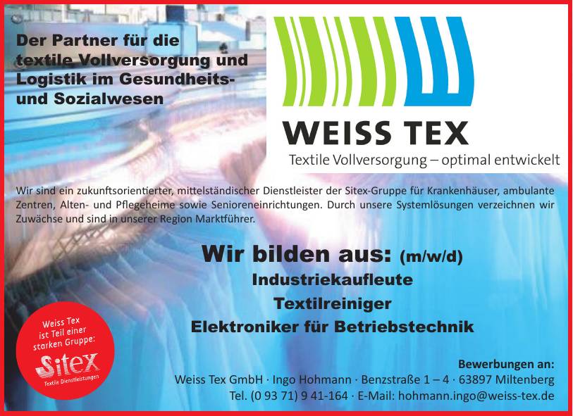 Wir Bilden Aus M W D Industriekaufleute Wir Bilden Aus M W D Textilreiniger Wir Bilden Aus M W D Elektroniker Fur Betriebstechnik Weiss Tex Gmbh