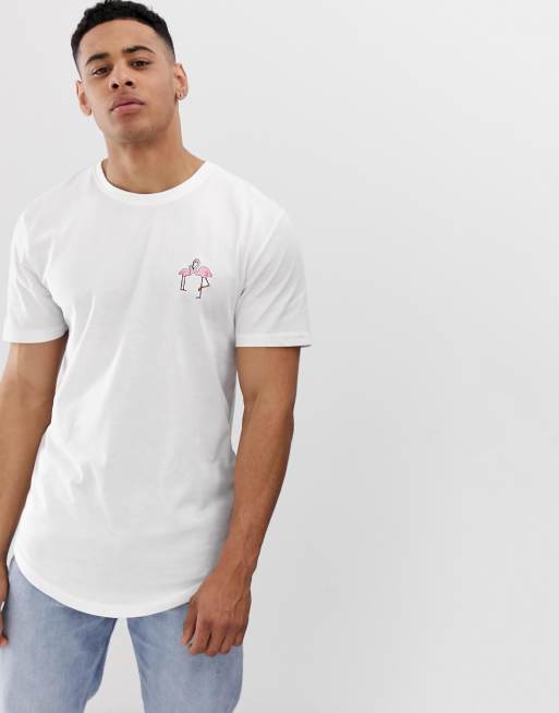 Only Sons Langes T Shirt Mit Flamingo Stickerei Asos