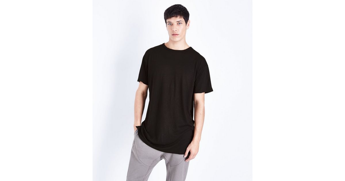Schwarzes Langes T Shirt Mit Schlitz Am Saum New Look