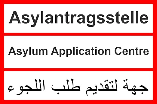 Asylbewerberschilder Asyl Schild Schilder Asylschild Ubersetzung Deutsch Arabisch Syrisch 6012s Asylantragsstelle 29 5cm cm 2mm Mit 4 Eckenbohrungen 3mm Inkl 4 Schrauben Amazon De Baumarkt