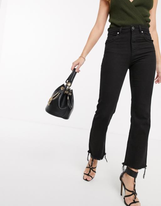 Asos Petite Cropped Flare Jeans In Washed Black With Arched Raw Hem Asos