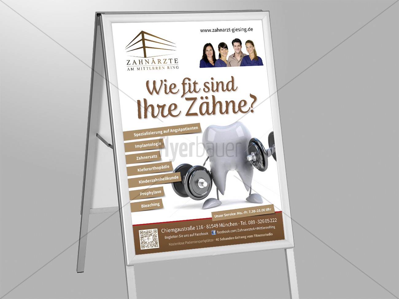Zahnarzte Werben Mit Aufsteller Bei Fitnessunter Flyer Design Briefing Designenlassen De