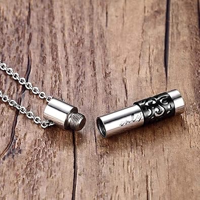 Jyuter12 Halskette Anhanger Edelstahl Parfum Flasche Anhanger Halskette Herren Damenbekleidung Kann Die Asche Souvenir Schmuck Zylindrischen Grau Gedenk Neutrales Geschenk Offnen Amazon De Schmuck